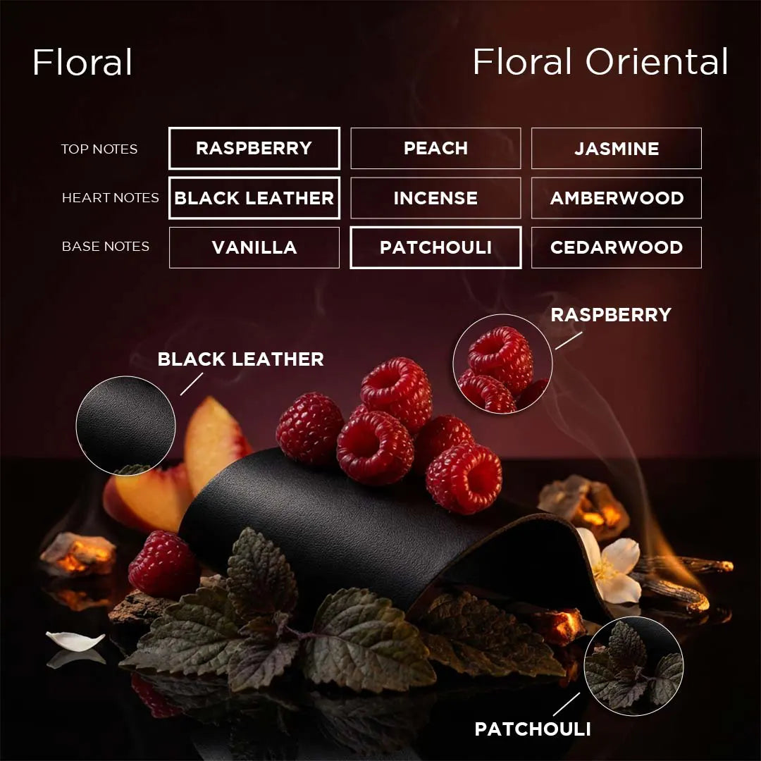 Offbeat opens with an electrifying contrast—a juicy raspberry pop clashing beautifully with rich, dark leather.This unexpected combination instantly grabs attention, setting the tone for a scent that celebrates individuality and fearless expression.