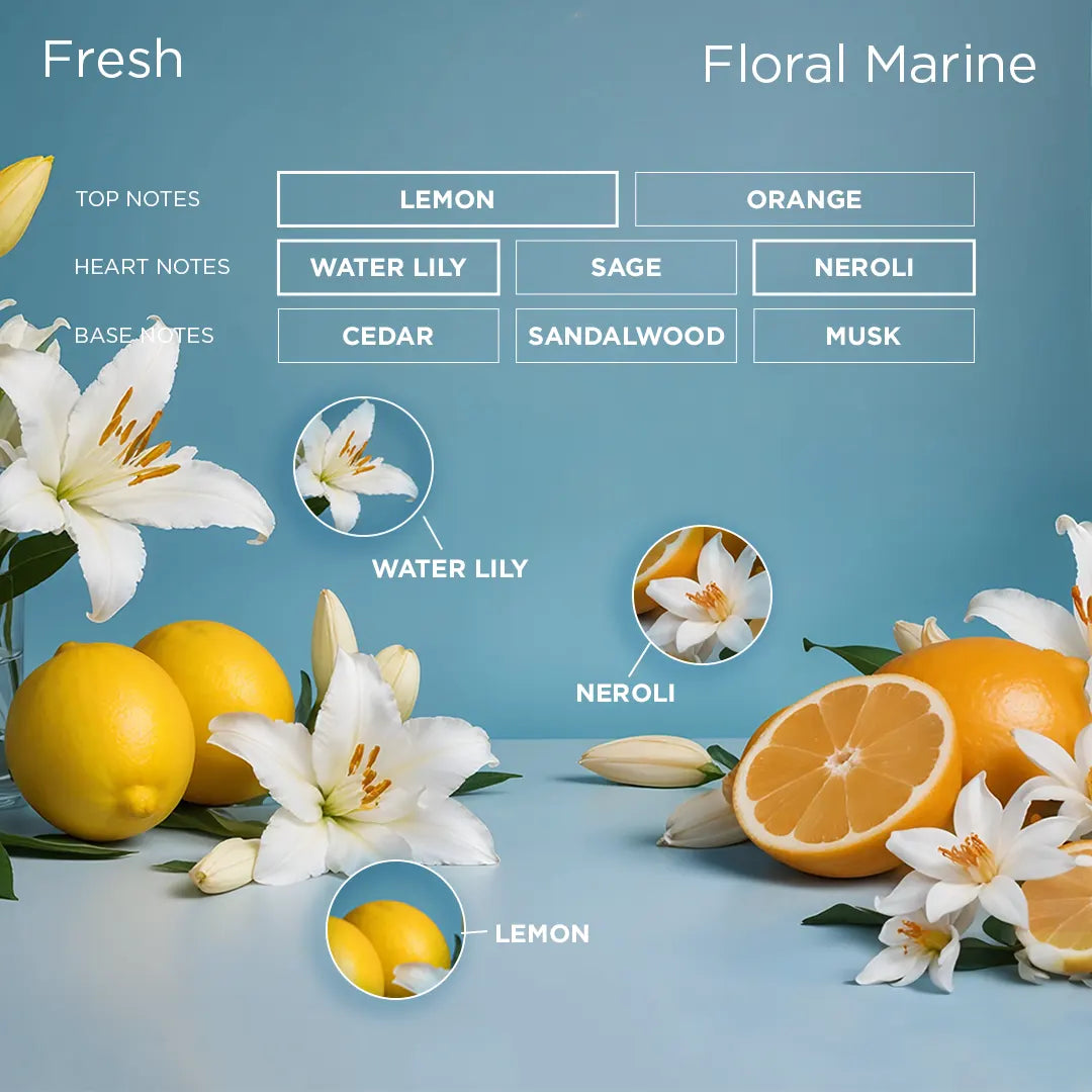 As refreshing as sipping Pina Coladas by the ocean,Aqua Gamewill transport you to the majestic and mysterious aquatic world. The fragrance opens with the tangy notes of Lemon and Orange, setting the tone for a lively scent experience. It flows into a captivating blend of Water Lily, Sage, and Neroli, sparking a burst of energy and excitement. Finally, the base notes of Musk, Cedar, and Sandalwood ground the fragrance with a warm and woody finish.
